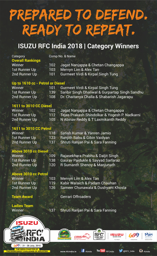 Rainforest Challenge India (RFC India) is part of the RFC Global Series events that are held in multiple countries across the globe. Since its launch in 2014, it has evolved into the toughest, longest, biggest and most prestigious off-road driving motorsport competitions in India. Held annually in Goa during the monsoons, its participants include the most evolved off-roaders from all parts of India who compete in specially prepared 4-wheel drive vehicles over a week to conquer multiple offroad obstacles or challenges called “Special Stages”.