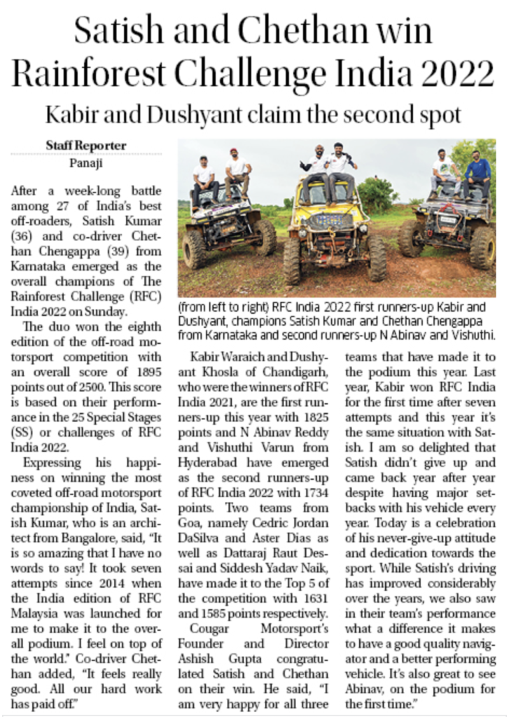 Rainforest Challenge India has become the most prominent off-road driving motorsport competitions in India by following an extensive PR plan that has resulted in coverage by all tier 1 media publications and leading auto & sports journalists from all major media houses.